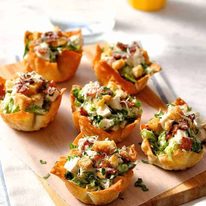 - Divide the salad between the wonton cups, top with croutons, a pinch of parmesan and a sprinkle of parsley.