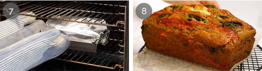 Cool 5 minutes in the loaf tin then at least 10 minutes on a rack before slicing (it’s very fragile when hot, straight out of the oven).