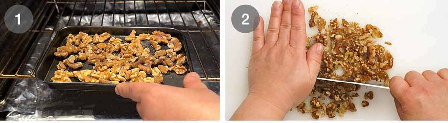 Chop – Cool the walnuts on the tray then roughly chop.