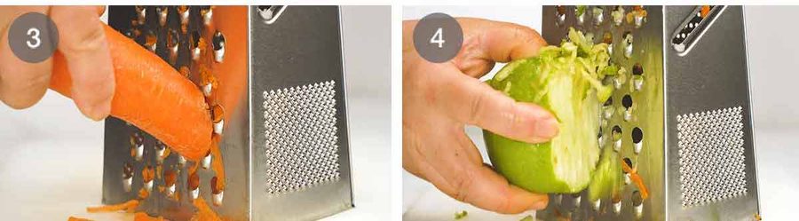 Grate the carrots using a standard box grater. I don’t peel the carrots. Free nutrition!