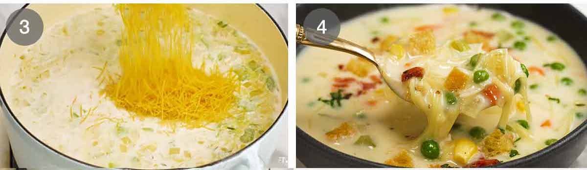 Creamy chicken noodle soup with mini croutons