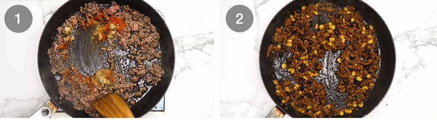 Here’s what goes into the taco flavoured beef filling. It’s the same seasoning I used for my old school beef tacos which I adore!