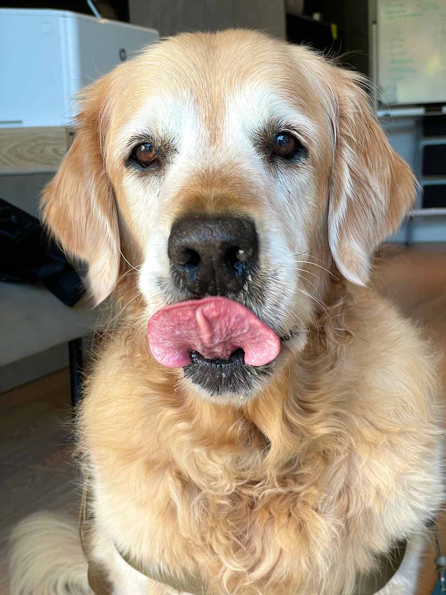 A stray strawberry and a huge hunk of pancake may have fallen his way….. 😉