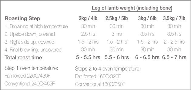Hi Grace, there is a table of weights & temperatures at the bottom of the recipe for different size legs of lamb.