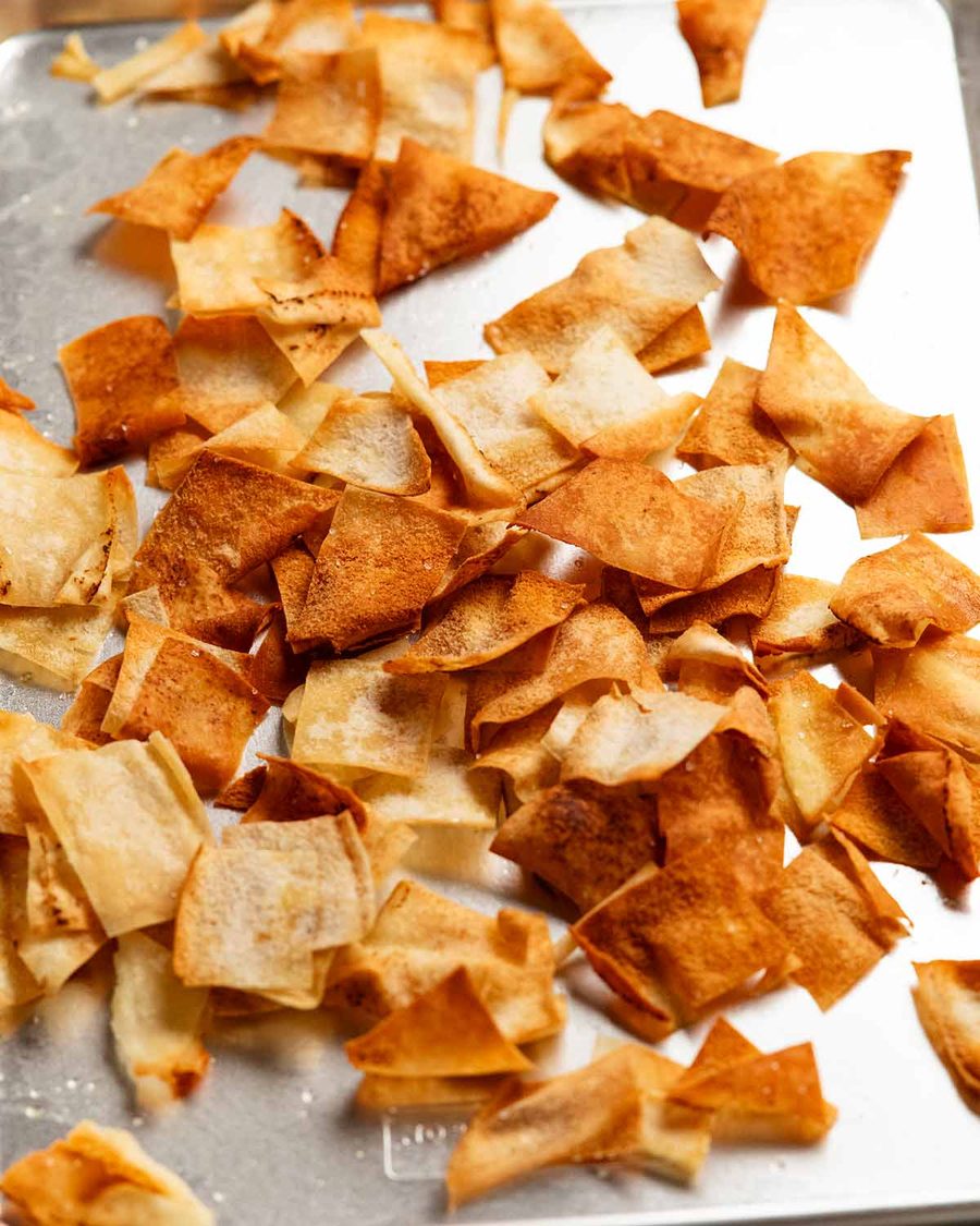 Use Lebanese bread or pita bread (the thin type, not thicker bready type). Cut into pieces then toast or fry until crunchy!