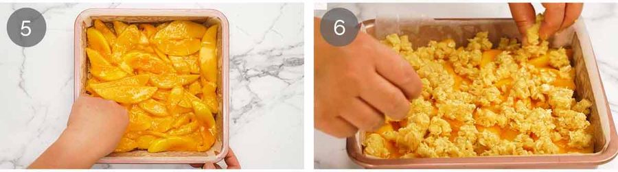 I made two adjustments: firstly I always make slices in my standard 20x30cm lamington pan, so I multiplied the recipe by 1.5. Secondly, as a pastry chef with a fondness for taking my pastries a bit further when it comes to baking, I tend to always par bake my bases when the filling is moist like this. So I parbaked the base layer for 15 minutes at 160 C (fanforced) while I was chopping up my three sensational honey gold mangoes. Worked beautifully!