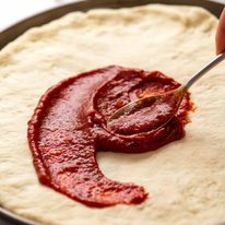 After rolling it out, just top as you do any pizza! Spread with sauce, then toppings of choice.