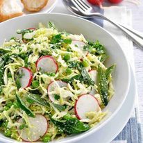 Pea, Cabbage, Parmesan and Mint Salad holds up well prepared in advance. If you are making it the day before, keep the dressing and parmesan separate. You can dress it up to 4 hours ahead of serving it – any longer and the cabbage will wilt too much.