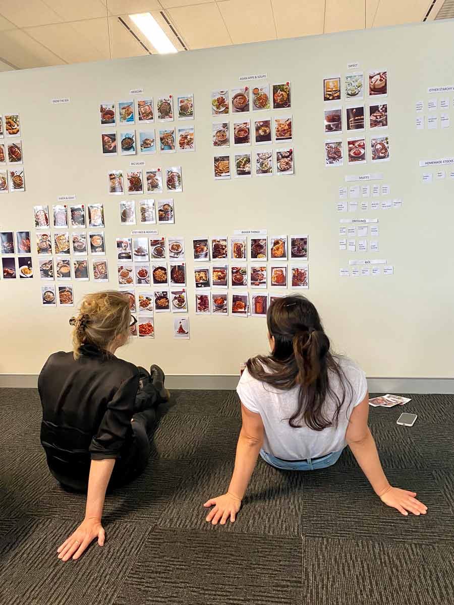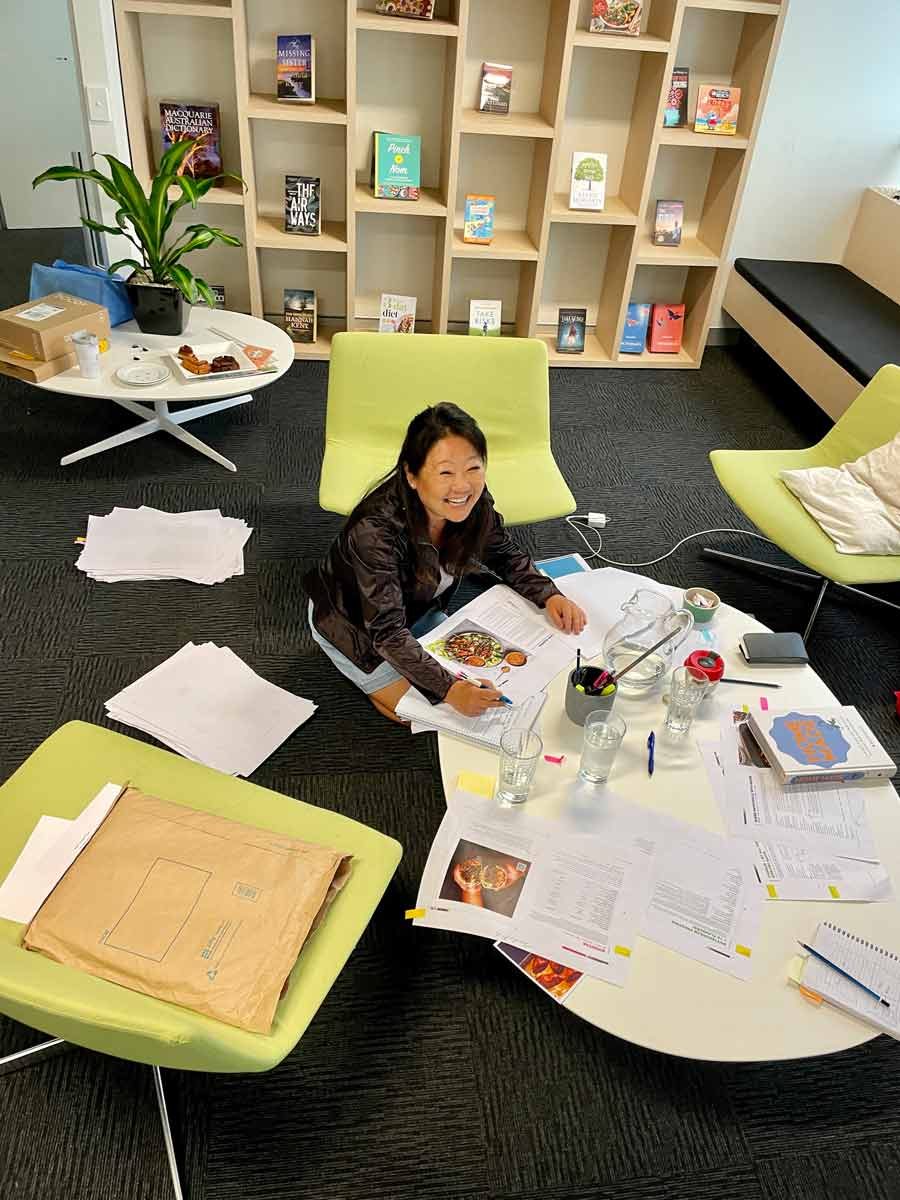 I actually enjoyed the strategic thinking behind this part of the project. Here I am with my publisher, Ingrid from Pan Macmillan, with a photo of all the recipes up on a wall as we went through what I described as “ripping up then stitching the cookbook back together again”!