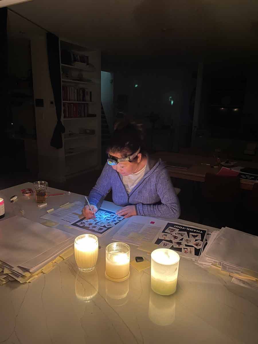 I find food helps me through it. Here I am on a proof reading day at Pan Macmillan with cheesecake to push me through the day.