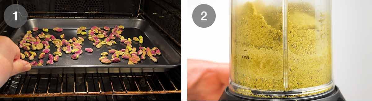 Please don’t skip toasting the pistachios. It not only brings out the pistachio flavour (especially imperative if you get pistachios from regular grocery stores like I do), it makes them crisper so they grind up more easily into a powder rather than turning into a paste.