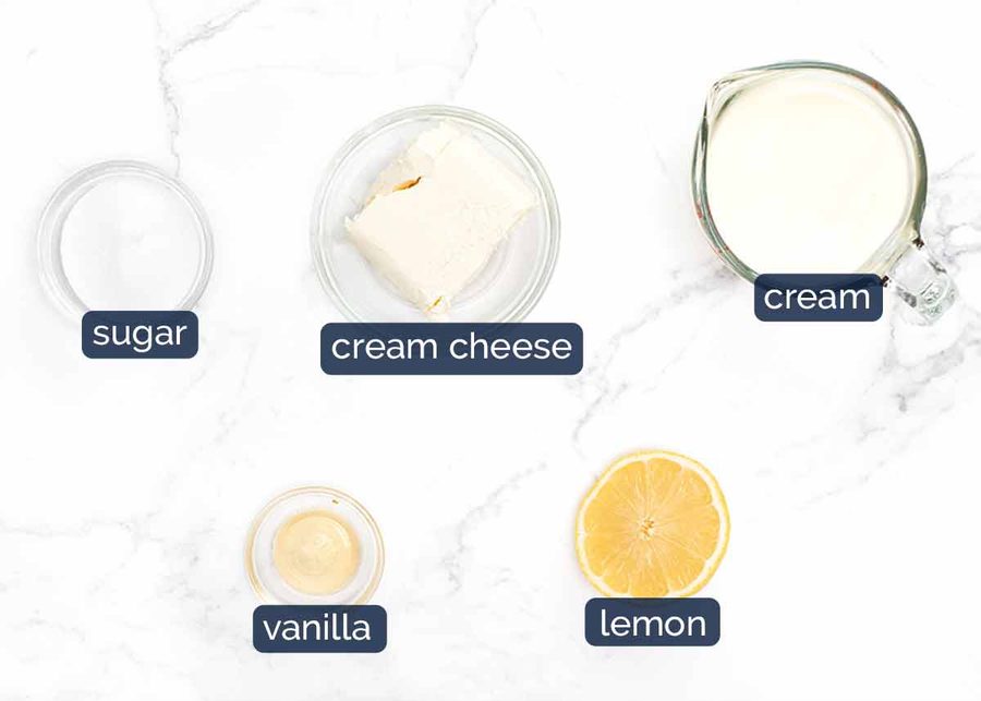 Whip cream – Then add the cream, sugar, lemon, vanilla and salt, and beat until the cream is whipped. This frosting will look and behave like regular whipped cream, but it is a little richer thanks to the cream cheese. (Which is why it will stay fluffy for days rather than weeping like regular cream).
