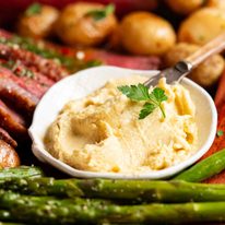 Keywords: compound butter, roasted garlic butter, steak sauce