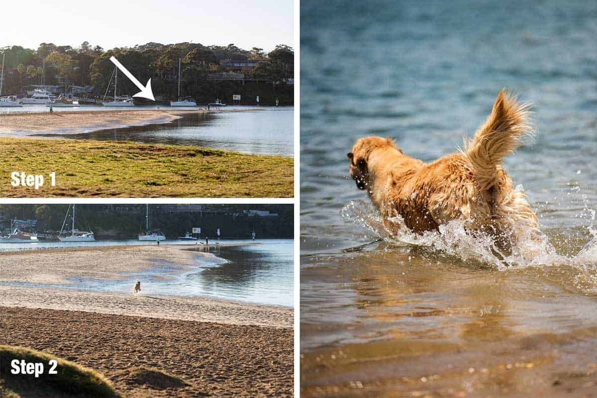 At the time this post goes live, I’ll be up in the air enroute from San Francisco to Sydney, back to my usual routine. This is part of it – every single time I take Dozer to the beach, I open the boot, Dozer leaps out, bolts across the park and all the way down the beach about 500m/550 yards away (Step 1) then a few minutes later, bolts back to make sure I’m coming (Step 2).