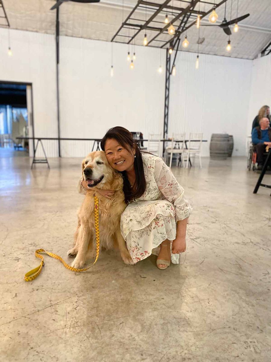 And here I am doing a talk during lunch with Rebecca Saunders, a professional speaker in Mudgee. Dozer is under the table, waiting for food scraps. 😂